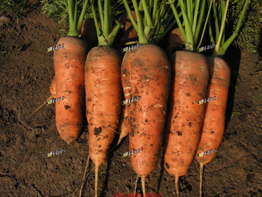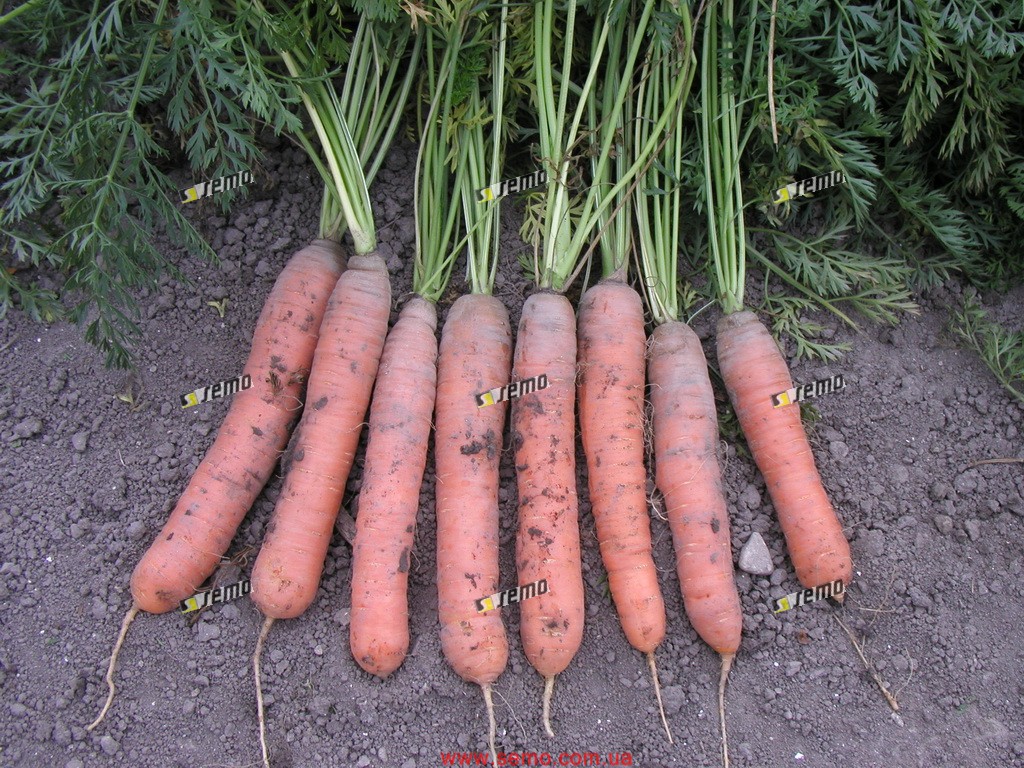 Среднеранний сорт моркови Нантского типа. Корнеплоды выровненные, цилиндрической