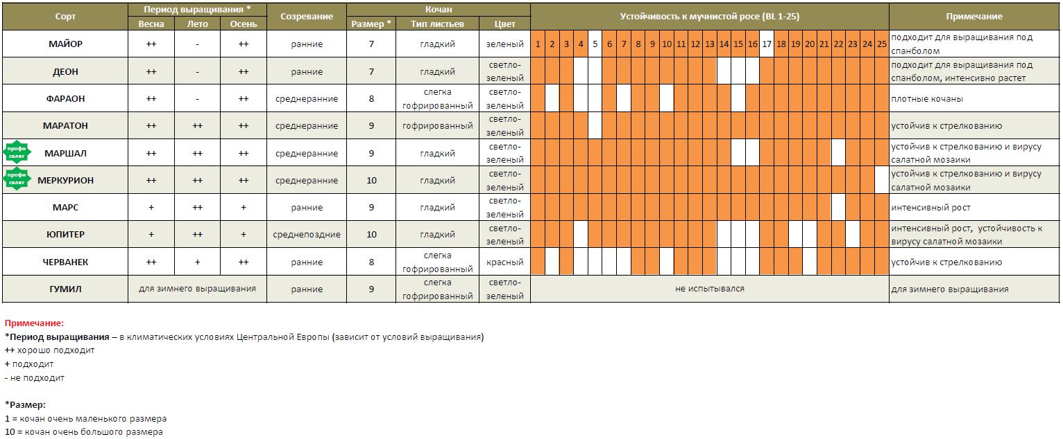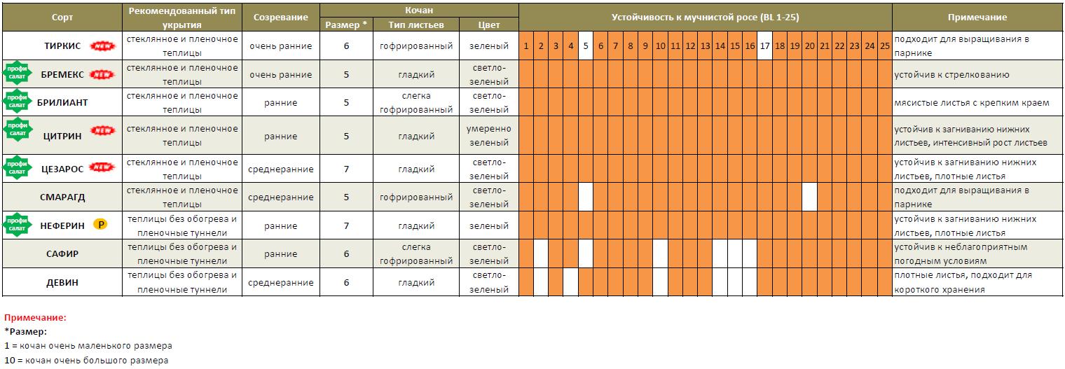 что уменьшает риск их загниванию. Устойчивость: BL – ложная мучнистая роса: 1-25