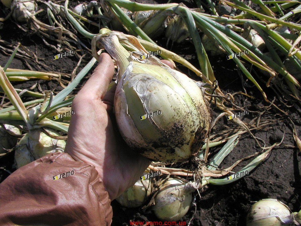 желтого цвета. Средний вес луковицы 800 г, при прямом посеве 400 г. Мякоть белая, очень сочная и
