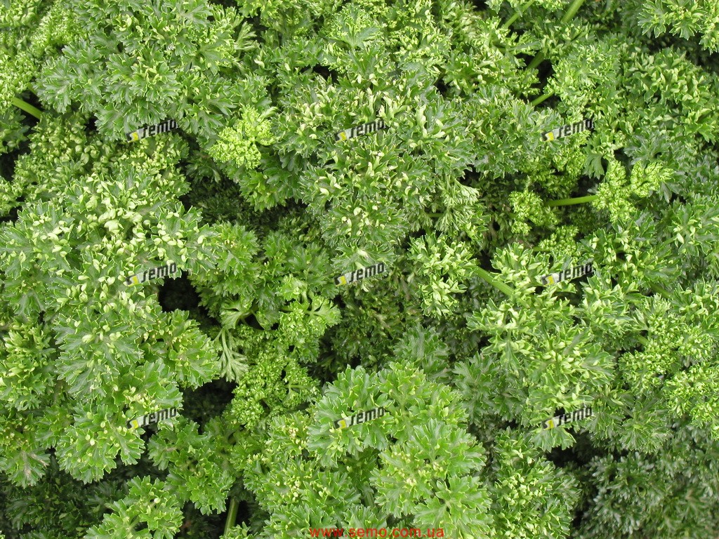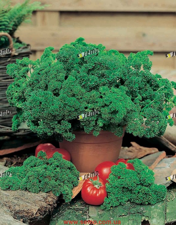 Сорт кучерявой петрушки типа Парамаунт с очень кучерявыми темно-зелеными листьями на