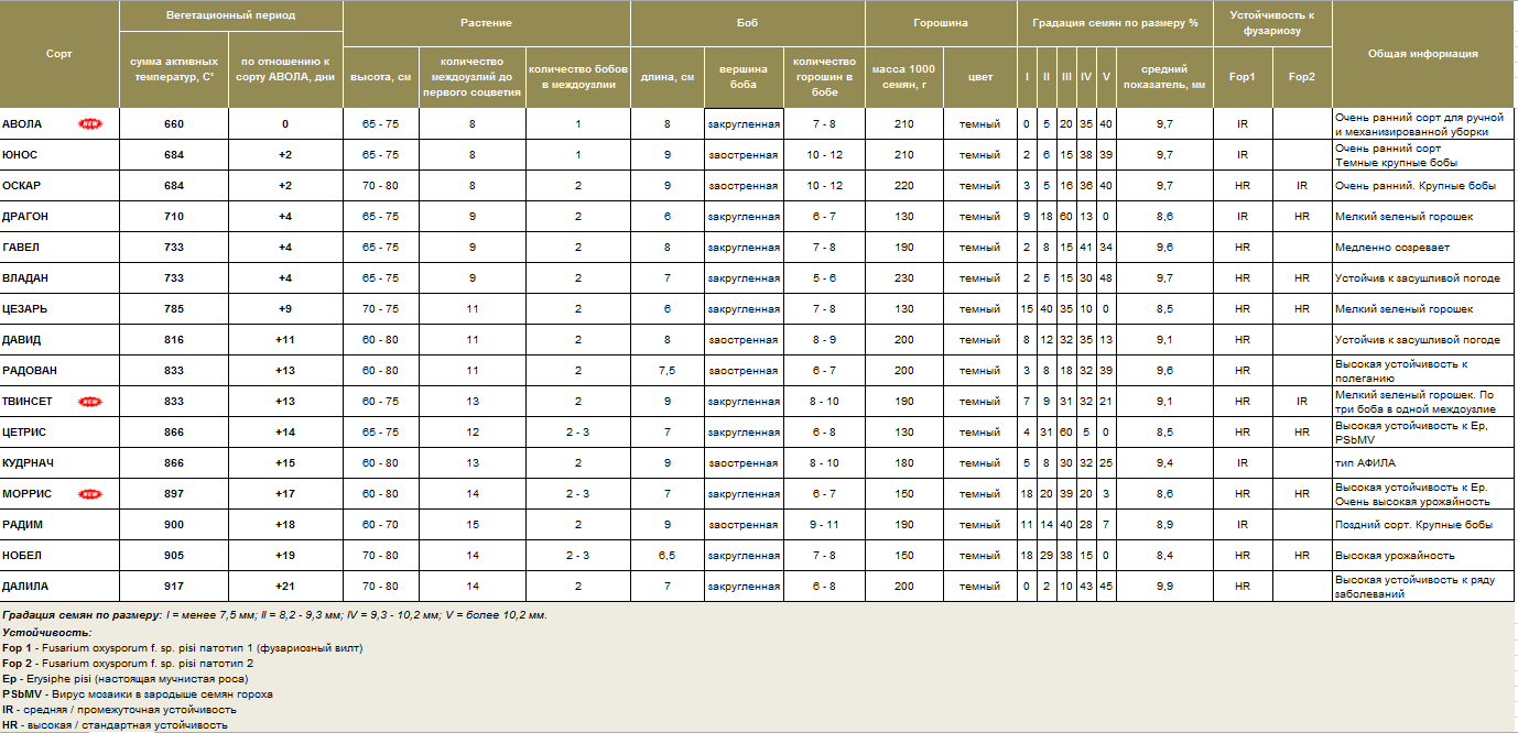 Ранний сорт овощного гороха, имеет самые крупные горошины из всех сортов, представленных в