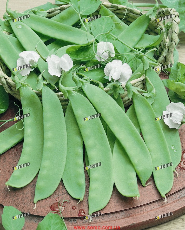 Среднеспелый сорт сахарного гороха. Растение высотой 150-200 см. Бобы плоские,