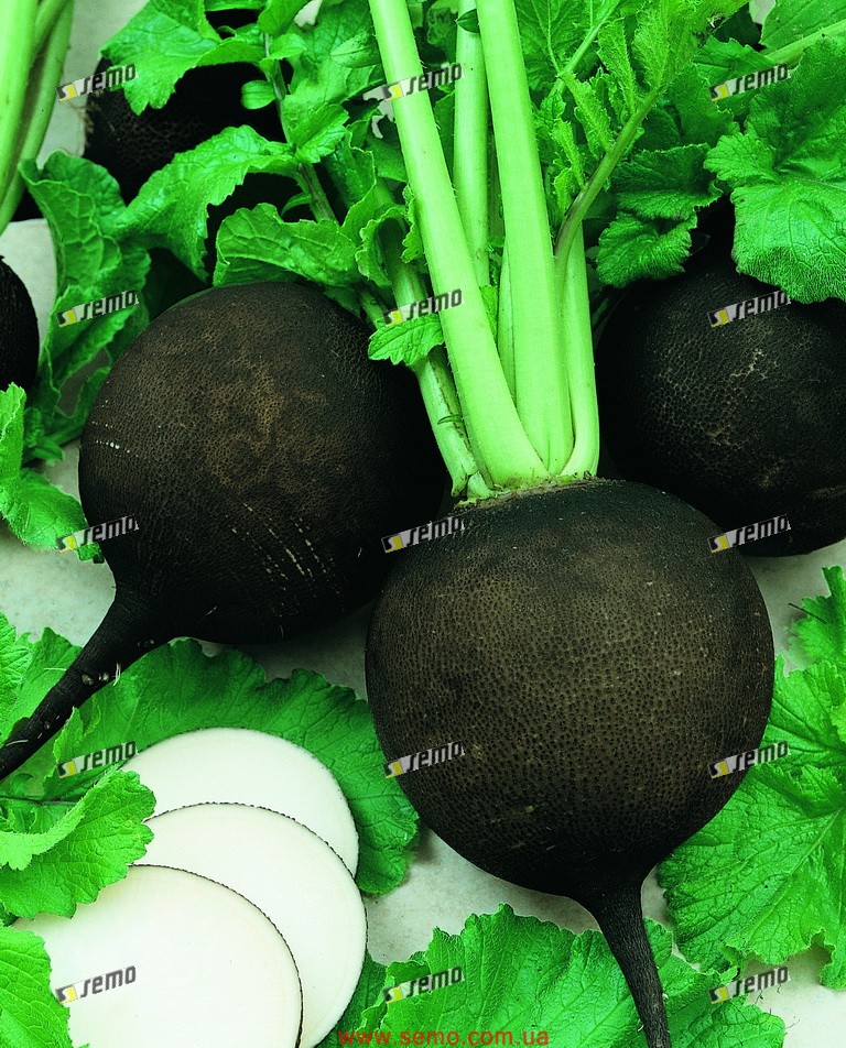 Среднеспелый, высокоурожайный сорт редьки. Корнеплоды округло-плоской формы, диаметром 5-9 см, черного