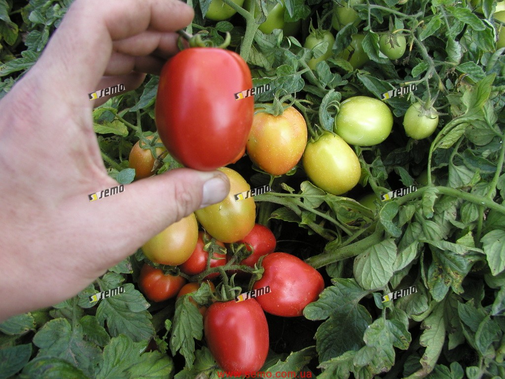 Очень ранний, высокоурожайный сорт кустового томата. Плоды очень плотные, однородные сливовидной формы, насыщенного ярко-красного