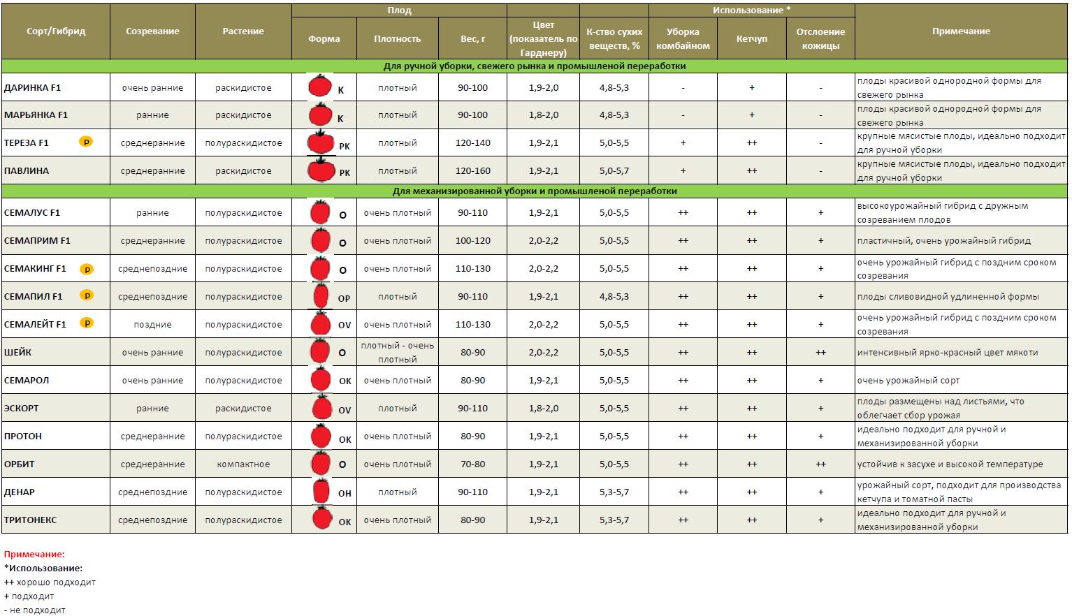 консервирования, производства томатной пасты, кетчупа, свежего рынка.